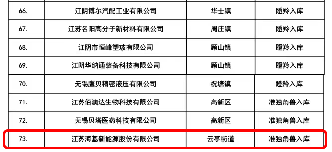 上榜!海基新能源入庫(kù)江蘇省“準(zhǔn)獨(dú)角獸企業(yè)”