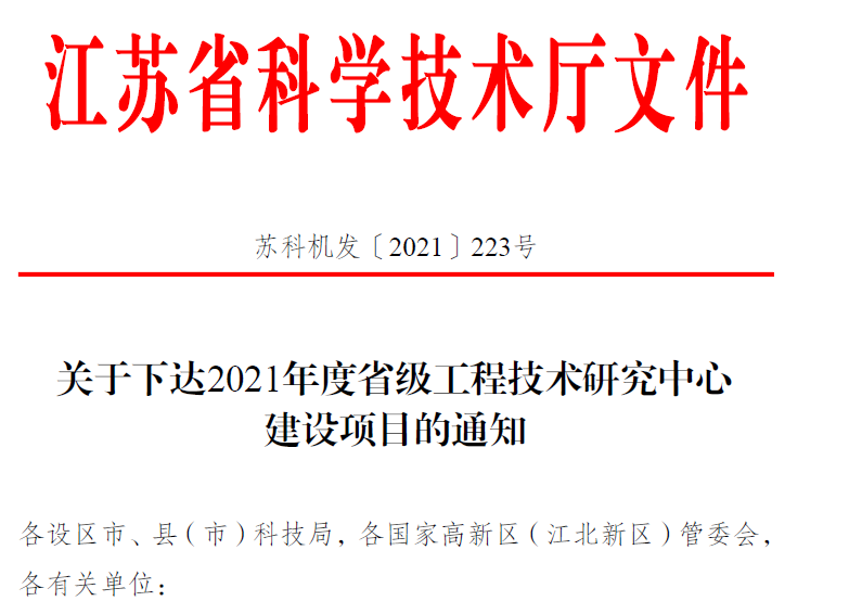 ?;履茉闯晒Λ@批建設江蘇省省級工程技術研究中心